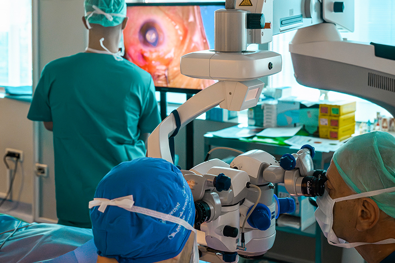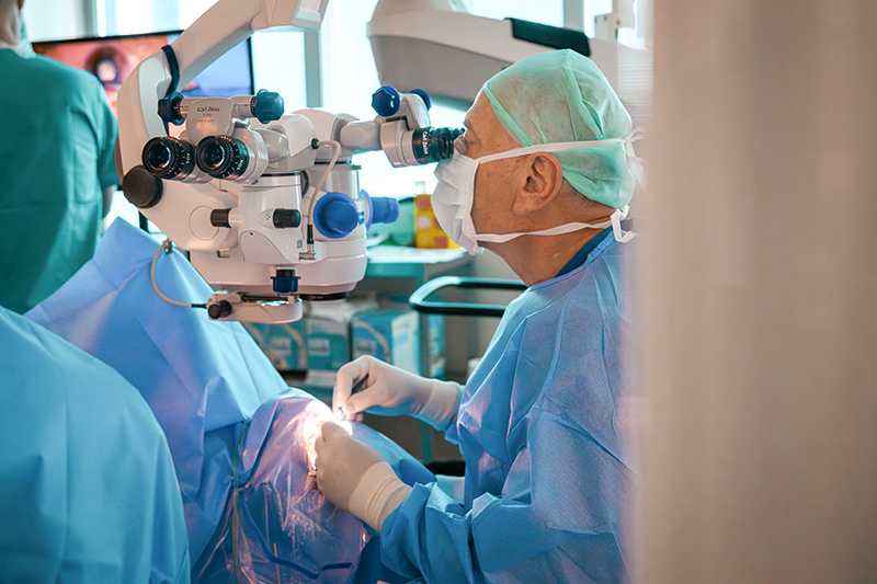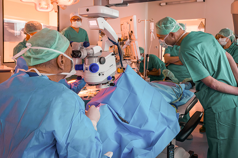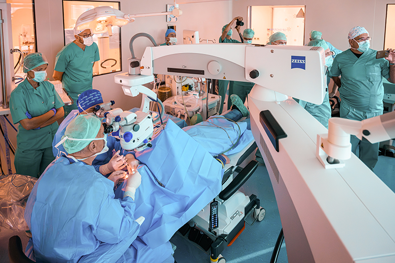 Prof. dr. Nikica Gabrić je izvedel demonstracijo vstavitve SING IMT leč pri treh novih pacientih ter delil svoje vrhunsko znanje in izkušnje s kolegi pri izvajanju tega zahtevnega mikrokirurškega posega.
